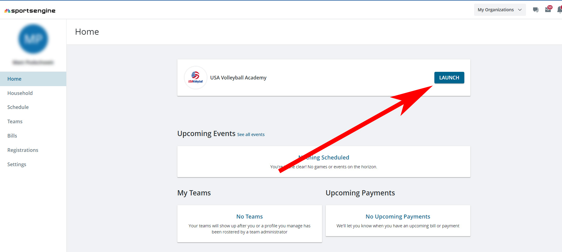 2. Click the USA Volleyball Academy Launch button.